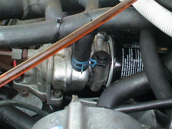 sind beide Schlauchanschlüsse des Kühlers gleichwertig in den Ölkreislauf eingebunden und die “normale” Verbindung ist auch vorhanden. Da der Druck an beiden Schläuchen gleich ist, gibt es kaum Ölfluß durch den