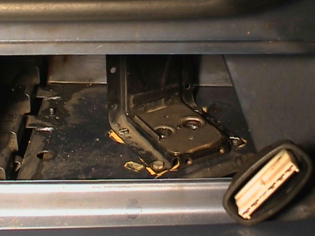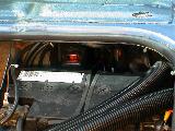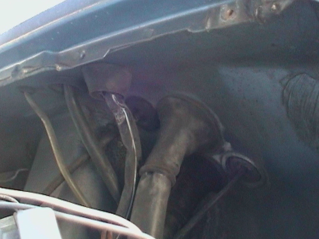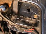 Hinter dem oberen Kühlergrill kann man in den vorhandenen Leitungsdurchführungen gut noch einige Leitungen in Richtung Lenkrad durchschieben (für Schaltuhr und Lüftung)