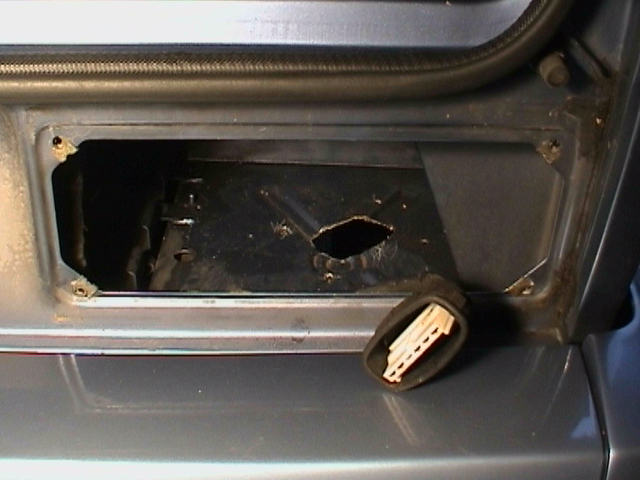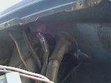 Das ist der alte Auspuff mit dem Schalldämpfer, jedoch ohne Auspuffplatte. Diese ist normalerweise angeschweisst, war aber “abgefault”.