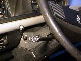 Der Bedienhebel ist mit einem Blechwinkel befestigt, so dass seine SET+ und SET- Richtung parallel zum Lenkrad verläuft.