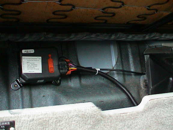 Dieser Platz hat den Vorteil dass das Gerät gut geschützt ist und man die Inbetriebnahme leicht machen kann da die Schalter gut zugänglich sind. Ausserdem sieht man die “Diagnose-LED” vom Fahrersitz aus und kann die