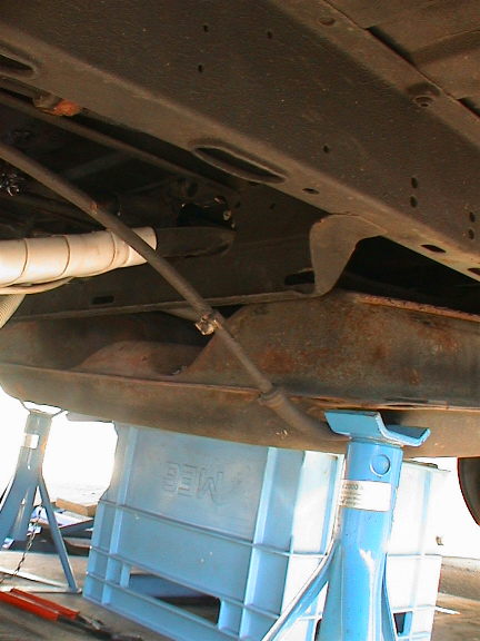 Zum Austausch der Rohre muß der Tank ausgebaut oder wenigstens abgesenkt werden. Dazu muß das Einfüllrohr und die Verbindungen zu den Ausgleichsbehältern abgebaut werden.
