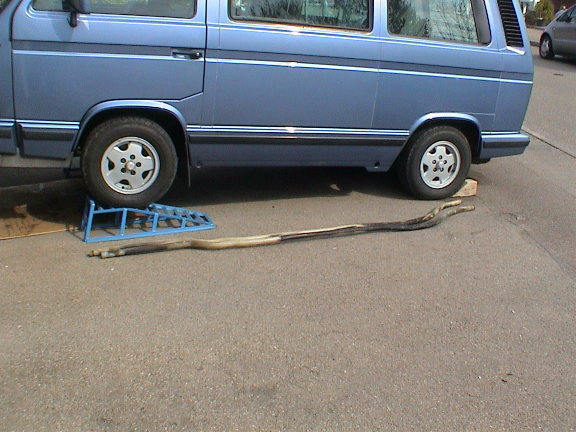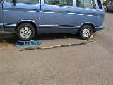 Die Reparatur macht ohne Hebebühne keinen Spaß, ist aber möglich mit den Auffahrrampen (siehe Bild). Das hat den Vorteil daß man den Tank (vorher leerfahren) absenken und ablegen kann, ohne die Dieselleitungen
